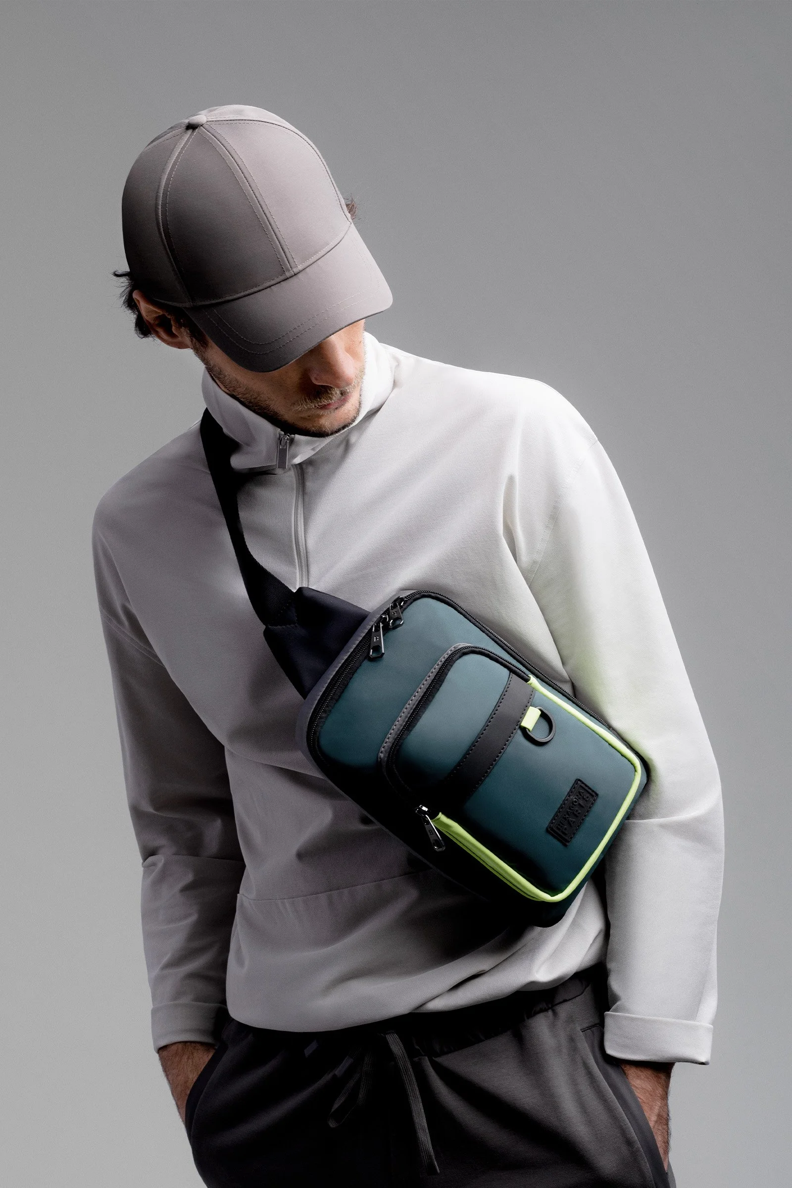 Cross Body Bag : Waterproof nylon and PVC, adjustable nylon strap, plastic buckles and metallic zipper.