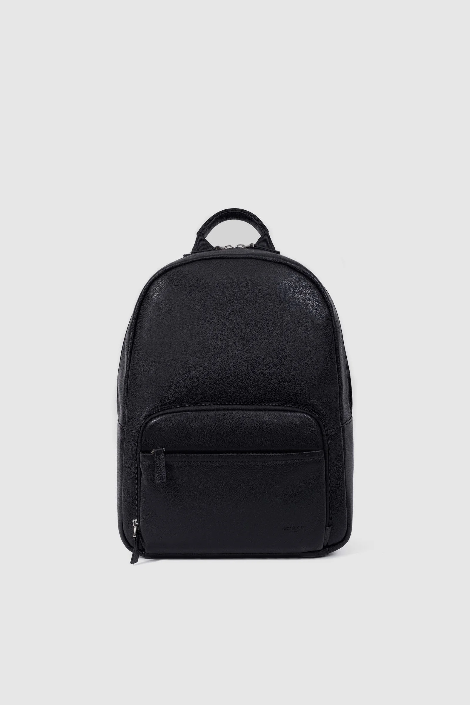 Backpack : Leather, metallic buckles and nylon strap.