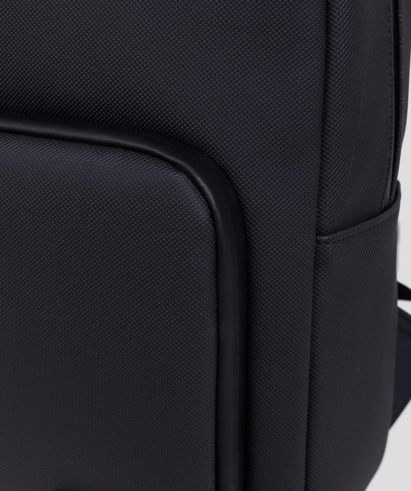 Backpack : Embossed PVC and leather, waterproof zip, metallic buckles, padded strap.