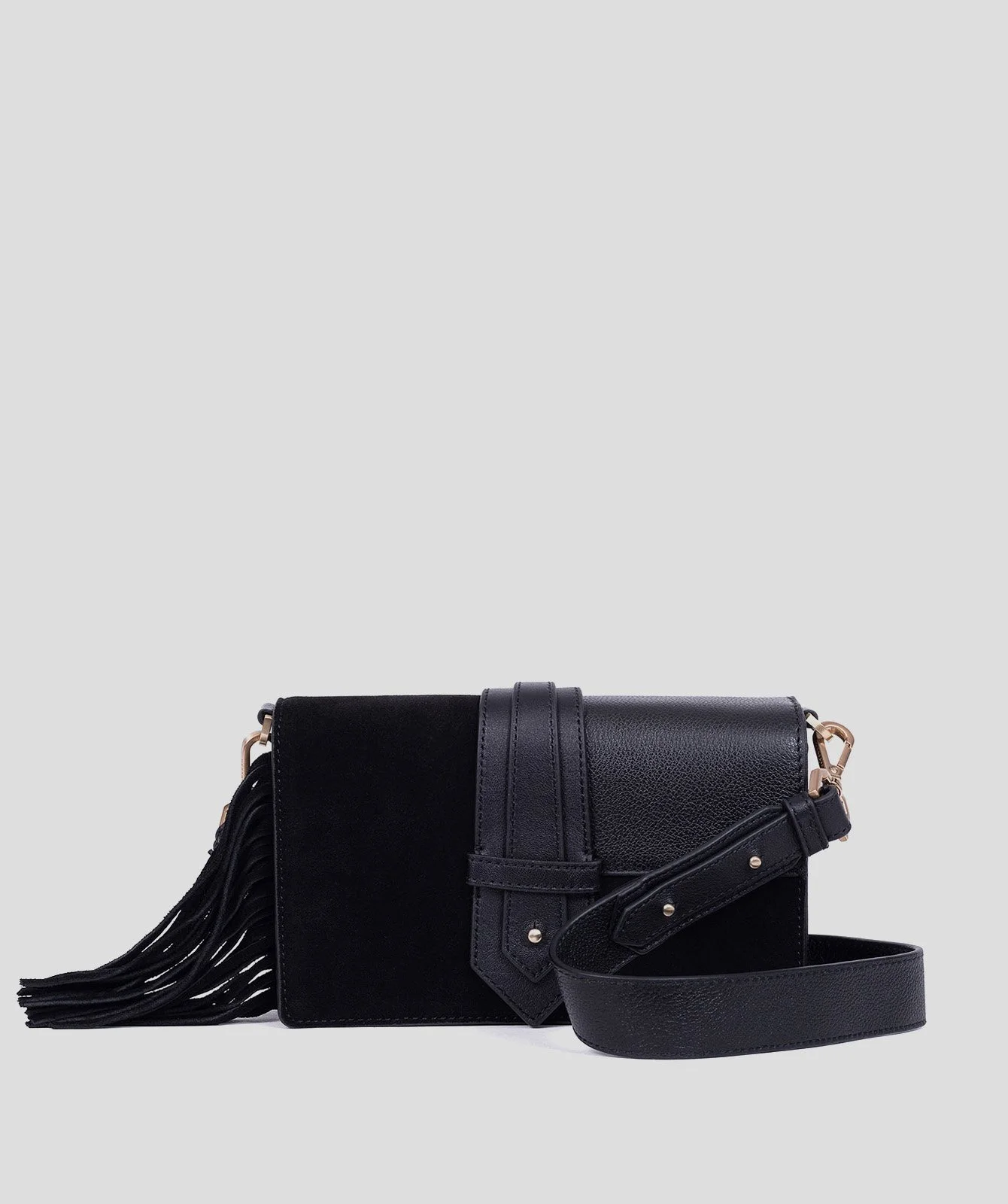 Cross Body Bag : Velvet, smooth & grained leather, metallic buckles.